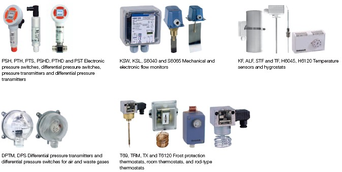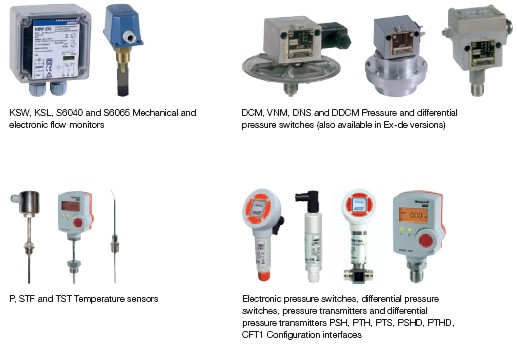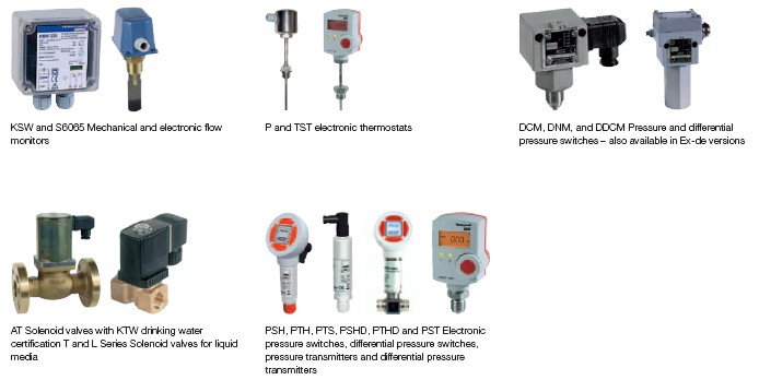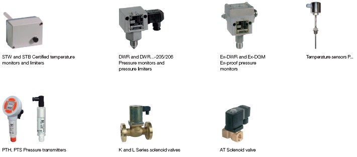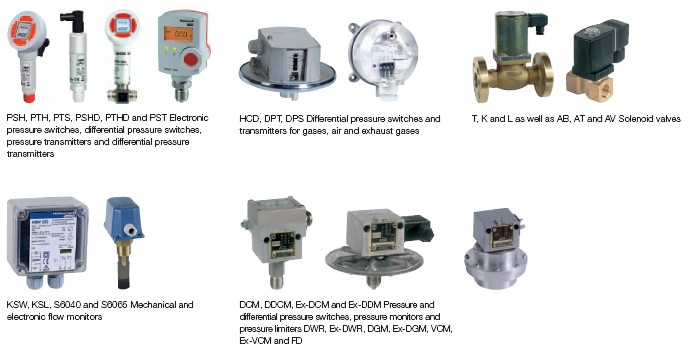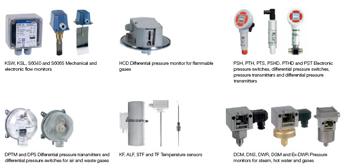 DPTM and DPS Differential pressure transmitters and KF, ALF, STF and TF Temperature sensors DCM, DNS, DWR, DGM and Ex-DWR Pressure differential pressure switches for air and waste gases monitors for steam, hot water and gases
