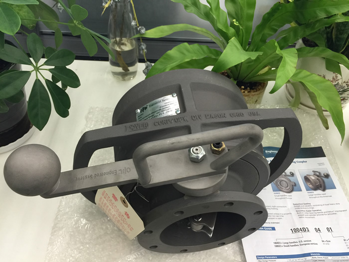 OPW工程系統公司生產的1004D3/D4型產品是標準的“微滴漏”底部灌裝用快換接頭,在大型油料裝車站都經受了長期使用的考驗。1004D3 / D4 型能與所有按API RP-1004規格要求生產的4"底部灌裝接頭配合使用,在汽油類裝卸時使用能大大減少斷開時的液體損失。API干式接頭(又稱干式閥、干式分離閥、下裝接頭),主要應用于石油庫區底部密閉裝卸系統中鶴管與油罐車之間。接合快速,由于具有自封機構,基本可以做到接合與分離時無泄漏。是油氣回收的重要環節設備。手動開啟機構。