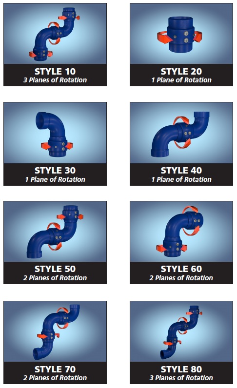 所有OPW旋轉接頭都是全通徑系列號為40帶短半徑彎管結構,除了6"、8"和10"結構鋼和不銹鋼旋轉接頭是長半徑彎管。所有旋轉接頭 的球軸承滾道和密封面都是精密機加工和微處理的,確保無磨損操作和優秀密封特性。所有鋼和球墨鑄鐵旋轉接頭都涂藍漆。詳細系列