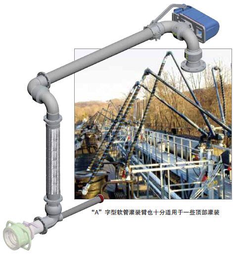 除了底部灌裝外,“A”字型軟管灌裝頭還常常在燃料油庫上用來作為氣相回收臂,也可改裝用于頂部灌裝或卸料用途。