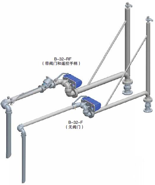以增加強度和支撐力。這種配置結(jié)構(gòu)能針對車位偏差提供更大的靈活性,而且從灌裝臺到鐵路或公路槽車之間可達到更大的伸展距離。懸臂式灌裝臂可