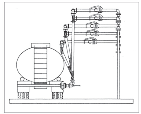 這種灌裝臂的4"型號的使用方式與衡重式軟管灌裝臂完全相同。不同點僅在于其保持平衡的機理是采用扭力彈簧而不是衡重物。四組相距18"、伸展距離為114"的長程型軟管灌裝臂將完全覆蓋API RP-1004底部灌裝需求空間的范圍。伸展距離為52"的短程型灌裝臂要達到API灌裝空間的要求,可采用三組灌裝臂相距24"安裝的辦法來實現。