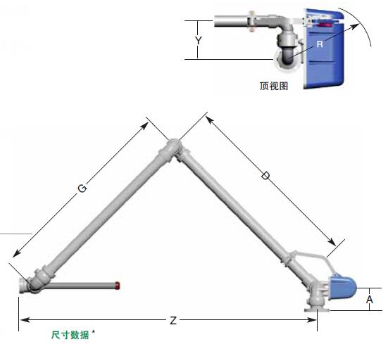 “A”字型框架是一種較為常見的灌裝臂配置型式。它具有良好的靈活性、可達距離長,且使用操作十分方便。它可在高度或傾角方面調整到車輛裝卸過程中的任意位置。灌裝臂可以向上收起,以接近垂直的位置收藏起來,并能方便地轉動,從而朝裝車站的任意一側進行灌裝。