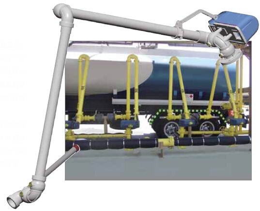 “A”字型緊湊的外形使灌裝臂能夠相對靠近地安裝在一起,往往安裝在與槽車聯接要求的高度大體相當的立柱上。它們也可以相鄰地安裝在階梯上升的立柱上,互相交疊,從而可對多艙室的槽車同時進行灌裝。
