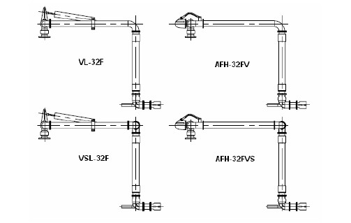 底部灌裝的優點之一就是可以進行油氣回收,我們提供的油氣回收臂有如下圖所示的幾種形式。
