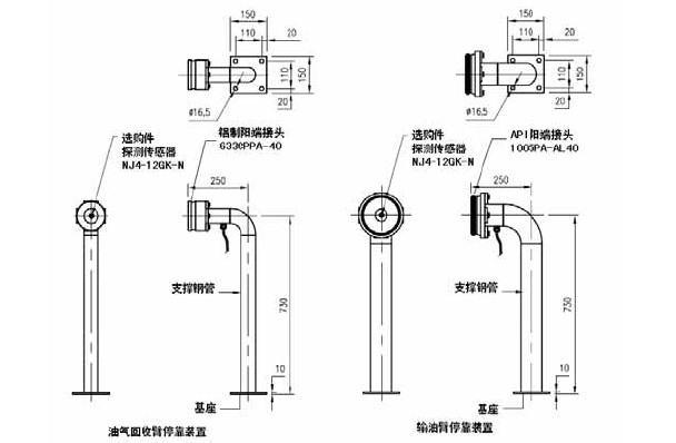 支撐架是用來支撐輸油臂及油氣回收臂。下圖以6 個輸油臂和1 個油氣回收臂為一套系統為例。
