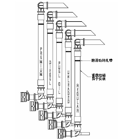 1)輸油臂部分下圖以6 個輸油臂和1 個油氣回收臂為例說明輸油臂的安裝。