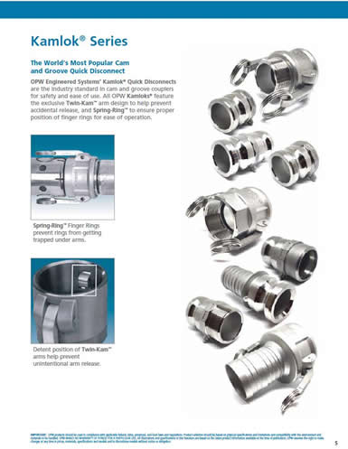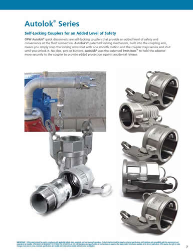 OPW工程系統公司是的干式快換接頭和快速接頭的生產廠商,所提供的產品能夠滿足各種流體輸送用途的需要。OPW專業為各行業提供危險液體輸送解決方案,其產品在全球得到了非常廣泛的應用。公司提供完整系列的接頭產品,包括 Kamlok和 Autolok快速接頭,對于要采用干式快換接頭的液體,我們提供Kamvalok, Drylok and Epsilon, 三種產品。對于高溫高壓下的密封應用,Drylok品牌提供新型的高性能陰端接頭和陽端接頭。OPW工程系統公司是的干式快換接頭和快速接頭的生產廠商,所提供的產品能夠滿足各種流體輸送用途的需要。在過去的60多年時間里我們的產品得到了非常廣泛的應用,適用的工業領域包括: 石油產品、 脂肪酸、 液化氣、 瀝青、 各類溶劑、 危險性和腐蝕性化學品等。