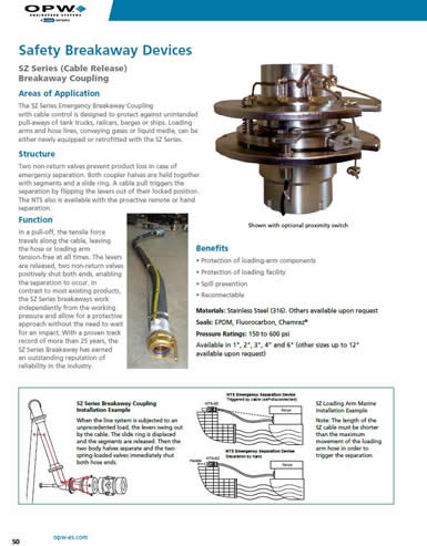 美國OPW流體運輸集團是多福集團公司的一個組成部分(OPW Fluid Transfer Group, part of Dover Corporation),由多家占據市場領先地位、專業從事危險性散裝產品安全操作和運輸所需之方案的設計、制造和銷售的運行公司組成。OPW流體運輸集團的各組成公司在各地與客戶結成合作,確保危險性散裝產品的安全加工、灌裝、運輸和卸載,并防止價格昂貴的石油和化學品跑料、儲槽充裝過量及易揮發氣體的排放等。不論是在化工生產、油品灌裝、鐵路槽車、公路槽車或是固體散裝物料運輸等領域里,包括條件-苛刻、要求-高的應用用途中,OPW生產的設備系統在安全、性能和服務等方面均堪稱楷模。 OPW是的干式快換接頭和快速接頭的生產廠商,所提供的產品能夠滿足各種流體輸送用途的需求。OPW產品的應用十分廣泛,包括石油產品、脂肪酸、液化氣、瀝青、各類溶劑以及其他危險性、腐蝕性化學品的輸送,適用于多種工業領域。