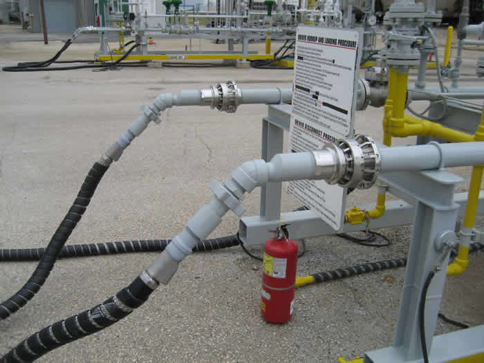 - 最常見的應(yīng)用是丙烷,丁烷,無(wú)水氨,冷凝水,汽油和柴油的裝載/卸載。