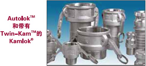 Kamlok是本行業中應用多的凸輪-滑槽式接頭裝置。可靠安全,使用方便,。Autolok快速接頭是一種自動鎖定的接頭裝置,可提供更高的安全水平。Kamlok和Autolok快速接頭都具備獨特的Twin-Kam 自鎖臂結構,該結構能更牢地夾住陽端接頭,防止其出現意外性跑料。這些廣