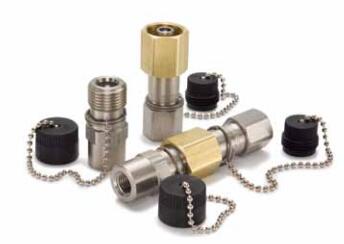 Parker's high pressure, connect under pressure 1/4" quick couplers and nipples are ideal for use in hydraulic applications where fluid lines require fast and easy connection and disconnection.1141 Series Couplers (hydraulic) 10,000 psi, connect with 1141 Series Nipples.Parker's 1141 Series have stainless steel bodies and brass sleeves. They are high pressure, thread to connect quick couplings with polyethylene seals that resist extrusion and abrasion. Couplers and nipples are available in 1/4" size and have dust caps and plugs included.