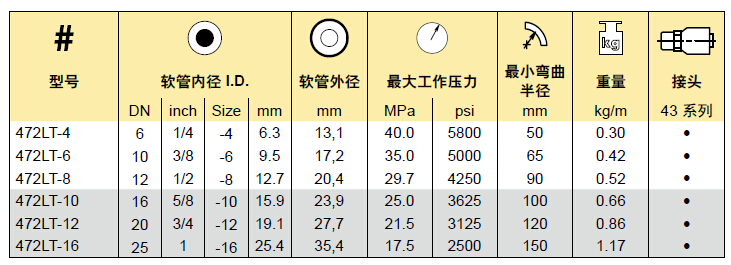 適用介質:石油基液壓油,水乙二醇,潤滑油,空氣和水。用于1.7MPa以上的空氣時,軟管需針刺。
