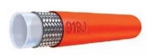 Parker 919J hose with silicone cover919J hose is the better option if an outer layer of protection is important. It has a silicone cover to protect the stainless steel wire reinforcement from fraying. It also prevents external contaminants from entering the transfer line.