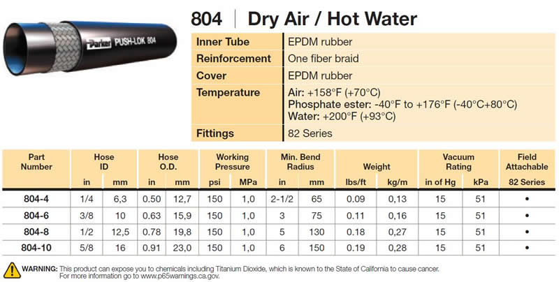 Parker 804干空氣/熱水軟管_派克 Parker 804- Push-Lok 干空氣和熱水軟管