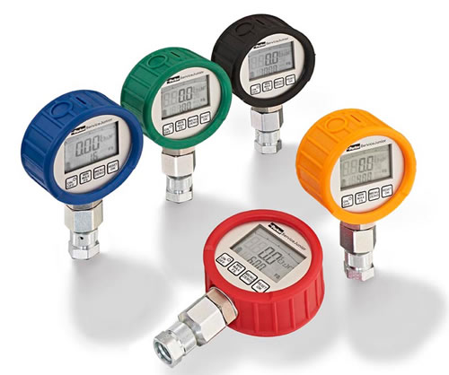Parker's ServiceJunior diagnostic test kits are ideal to digitally measure pressure and capture min and max fluctuations in any hydraulic or pneumatic system.The Parker SensoControl ServiceJunior is a digital pressure gauge with minimum/maximum memory capability and a graphic display. It has a scan rate of 10 ms and colored covers corresponding with the different measuring ranges for easy identification.