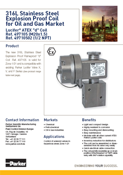 Parker Lucifer is a world leading producer of magnetic solenoid for the oil and gas industry. The company designs and develops high technology solenoid valves. With a strong focus on quality and meeting customer needs.The Parker Lucifer Series products have been designed to offer customers the ultimate in performance. Every valve is engineered for optimal operation, is constructed with modern machinery that use stringent processes, and provides standard features not necessarily offered in any competitive line.