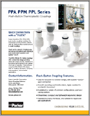 Users can know they've made a secure connection with the simple, push-button latch operation and audible “CLICK” of Parker's PPA, PPM and PPL Push-Button Couplings.