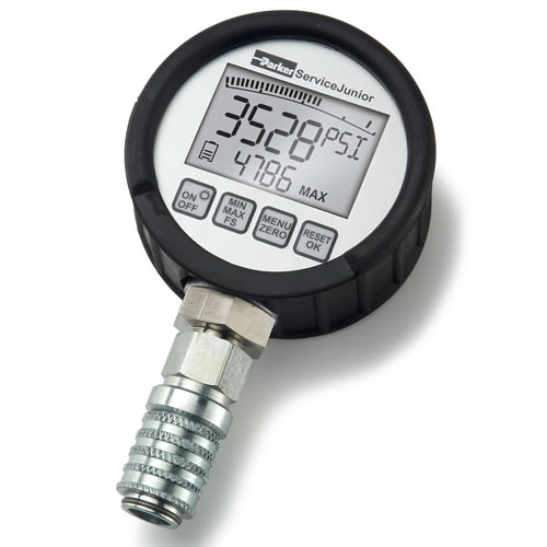 Digital Pressure Gauges, Multi Pressure Range Diagnostic Test Kits and T Fitting Accessories - Parker SensoControl ServiceJunior