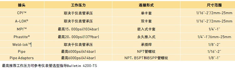 接頭,所有產(chǎn)品的工作壓力都符合ANSI B31.3.標準。