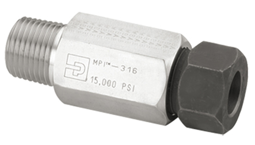 Parker's MPI Series is an inverted two ferrule design engineered and manufactured to provide secure, tight, and leak resistant connections for small bore instrumentation applications up to 15,000 PSI.Parker MPI Fittings are an inverted two ferrule, compression design. They are engineered and manufactured to provide secure, tight, and leak-resistant connections throughout industry, including off-shore oil and gas exploration platforms, research labs, and other facilities that require operating pressures in the range of 6,000 to 15,000 psi.