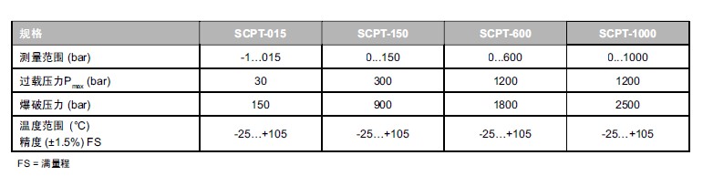 SCPT系列壓力/溫度傳感器非同尋常的產品特性: