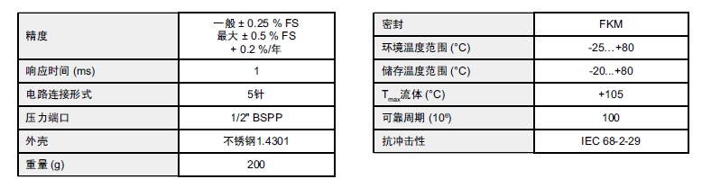 量程范圍:-1...015bar / 0....150bar / 0...600bar / 0...1000bar