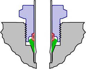 管道在安裝過程中不會發(fā)生扭曲,這是反向A-LOK 接頭的主要優(yōu)勢。所有安裝和拆卸動作沿軸向傳送到管道,由于管道沒有徑向運動,因此不會產(chǎn)生應力,這意味著機械可靠性不受損害。這些管件適用于薄壁和厚壁管道,可與多種管材配套使用,能夠重復拆卸和安裝。但安裝時仍需小心謹慎, 一旦內(nèi)部錐面受損,就需更換閥體。由于閥體為交叉孔鉆,該技術(shù)并不適用所有類型的閥組。