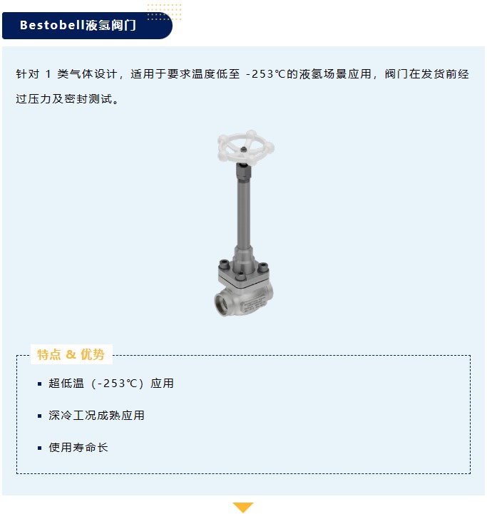 針對 1 類氣體設計,適用于要求溫度低至 -253℃的液氫場景應用,閥門在發貨前經過壓力及密封測試。