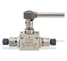 派克的3B高壓三通手動球閥。這些球閥操作高達 20,000 psi (1,379 bar) 與各種終端連接。這些閥門具有一個固定的干球孔從3/16" 到 1/2"。 |