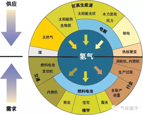 氫能源在交通、工業(yè)、建筑等領(lǐng)域的應(yīng)用,可豐富能源構(gòu)成。在交通領(lǐng)域中,用氫燃料電池給汽車提供動(dòng)力,能夠解決空氣污染、噪音污染和CO2排放帶來(lái)的全球氣候變暖等環(huán)境問(wèn)題。在工業(yè)領(lǐng)域中,氫氣一直是最重要的原材料之一,并且通過(guò)氫的使用可以使精煉等行業(yè)達(dá)到基本無(wú)碳排放。到目前為止,氫的制造和使用都局限在工業(yè)領(lǐng)域中,主要用途是作為化工行業(yè)的原材料。在建筑領(lǐng)域中,運(yùn)用氫能微型熱電聯(lián)產(chǎn)機(jī)組技術(shù)可以極大地提高能源利用效率,建設(shè)節(jié)能環(huán)保型建筑。