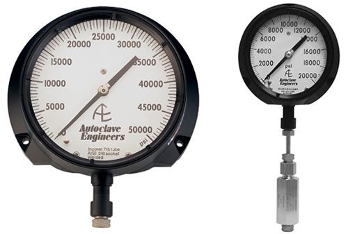 Gauges - Pressure gauges are offered for use in low, medium and high pressure systems. Instrument quality gauges are available to pressure of 80,000 psi (5115.7 bar).