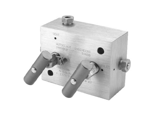 Parker Autoclave’s MVBB Series is a mini block and bleed valve that is designed for blocking, bleeding, and calibration of instrumentation systems. This valve is a rotating rising stem design, rated to 20,000 psi (1379 bar).Parker Autoclave's MVBB Series mini block and bleed needle valves are a two stem manifold valve providing an economical and convenient method of blocking, bleeding and calibrating pressure transmitters and gauges. The valve utilizes the mini valve packing and stem design making it compact and easy to use. The valve can be surface or panel mounted for safe operation. In addition, manifold style valves reduce the number of fittings and space required for installation.These valves have a rising stem bar stock body design with working pressures to 20,000 psi (1379 bar). The cone and thread connections utilize Parker Autoclave tubing with sizes from 1/4" to 3/8”". Operating temperatures can go from 0°F to 800°F (-17.8°C to 427°C) with special graphite braided yarn packing (GY). 316 stainless steel construction is the standard material with other options available. Along with their many features these valves provide dependable and trouble free service in wide variety of applications. Markets: Features/Benefits: Applications: MVBB Series Block and Bleed Needle Valves | MVBB Series Block and Bleed Needle Valves on Autoclave Engineers, Fluid Components Div. Of Snap-tite Inc. Autoclave series MVBB block and bleed valve is a two stem manifold valve providing an economical and convenient method of blocking, bleeding and calibrating pressure transmitters and gauges. The valve utilizes the mini valve packing and stem design making it compact and easy to use. The valve can be surface or panel mounted for safe operation. In addition, manifold style valves reduce the number of fittings and space required for installation. Block and Bleed Features: