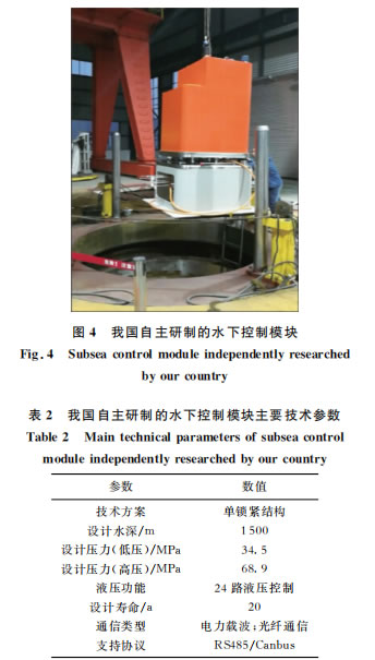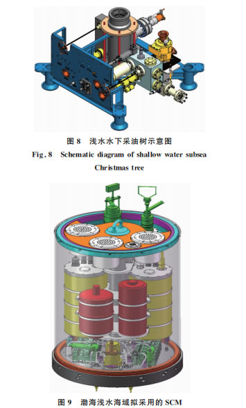 1.1 水下油氣生產系統應用典型設計案例 1.1.2 流花16-2/20-2/21-2油田群 流花油田群的開發成功克服了500m水深級水下油田生產系統總體和集成設計,水下控制系統液壓、電力、通信分析,中深水高凝油田輸送流動安全保障技術,多動態管纜與系泊系統耦合與干涉,電潛泵超長距離直驅變頻供電等技術挑戰,實現了我國500m級自營深水油田開發工程技術的歷史性突破。 1.1.3 陵水17-2氣田 針對陵水17-2氣田跨度大、井位分散的特點,該項目突破深水氣田水下生產系統總體布局分析技術,在考慮水下井口、雙管回路、遠距離單井回接、臍帶纜等因素的疊加前提下,解決了復雜分散的水下生產系統總體布置及優化技術。該項目實現了1500m級深水氣田水下控制系統設計分析技術在我國南海區域的首次應用。 1.2 關鍵設備工程化研制進展 1.2.2 水下控制模塊 1.2.3 水下連接器 1.2.4 水下多相流量計 1.2.5 水下臍帶纜 1.2.6 水下管匯 1.3 水下生產系統測試技術 國內目前已有少部分水下裝備的試驗驗證設備及設施,例如高壓艙等,但測試技術體系仍不完善;此外, 水下設備測試試驗驗證標準及驗證工作目前多由各制造企業在多方參與下,特別是第三方船檢機構的全程見證下取證,國產化研制接受標準、機構與工程化應用結合還需進一步探索;對于海試技術,目前國內一部分水下生產系統設備(水下閥門、水下連接系統等)已初步具備海 試設施條件,但尚沒有權威的海試平臺及測試機構。 1.4 系統集成技術 “十一五”“十二五”期間,我國已在一些項目中完 成了國外水下生產系統產品的應用,且部分實現了自主 系統設計、制造與安裝,在運維管理方面具備了初步經驗。但是目前我國水下生產系統集成技術尚不夠成熟, 需要系統研究并梳理總結,以形成水下系統應用技術體系,用技術體系和測試取證程序規避示范工程應用風險。 為推動我國水下油氣生產系統集成技術進展, 還需繼續深化水下采油樹、水下控制系統等關鍵設備的總體方案自主研發設計,實現關鍵設備國產化, 提高可靠性,解決水下生產系統國產化的關鍵路障, 達到降低深水油氣開發設計費用、裝備費用、人員費 用、安裝費用和管理成本的目的。 我國水下生產系統單體設備檢測手段還較為薄弱,且尚未有水下生產系統的認證單位,以及完整、權威的水下生產系統測試平臺。據此,應著手建立水下生產系統單體設備測試、系統集成測試、取證程序及安裝技術體系,解決產業化應用缺失的技術短板,構建以“生產廠商FAT-第三方/油公司認證-安裝承包商/油公司系統聯調測試(SIT)”為目標的測試系統。 1.5 淺水水下生產系統開發技術 淺水水下采油樹(圖8)和控制系統與深水設備存 在較大差異,需在設計與制造過程中給予充分考慮。與深水采油樹相比,其尺寸更小、重量更輕,在潛水員和簡 單工具的輔助下即可進行安裝、維修等作業。在控制系統方面,目前國內外的水下控制模塊(SCM)都是基于深水應用的平衡式和分體式,淺水SCM應考慮向承壓式和一體化的方向突破,以便適應在泥下沉箱工況使用。此外,國際上尚未有針對通航區的水下控制系統研究,尤其是大規模的直接液壓控制方式,由于該液壓控制方式無通信功能,因此需研制并配備水下信號采集傳輸模塊。圖9為渤海淺水海域擬采用的SCM結構示意圖。 為保證淺水水下設備的運行安全,須考慮漁業及航道通行條件下的水下生產系統安全防護技術。其中,水下管匯、水下采油樹等設施擬采用水下濕式 沉箱安全防護系統,按照水下生產系統的規?煽紤]采用整體沉箱、分體沉箱以及鋼圓筒沉箱等。在淺水水下生產系統中,亦可配備水下干式艙安全防護系統,實現水下干式操作環境,以達到降低水下設備費用的目的。此外,為使水下生產系統安全防護 技術切實具備保護水下設備的功能,應開展水下防 護安全預警系統的研究,保證該系統可在第一時間 準確檢測安全防護措施的失效行為,將水下生產系 統設備所受到的影響降至低。 2 我國水下油氣生產系統裝備工程技術發展趨勢 2.1 水下油氣生產系統集成測試裝備與技術 面向中深水開采和開發生產系統的關鍵設備所受復雜工作載荷和極端環境載荷的耦合作用,圍繞 提升我國中深水開采和開發生產系統關鍵設備的建造工藝、結構安全性和耐久性為目標,亟需建立復雜載荷作用下中深水關鍵設備的結構性能試驗測試系統,開展其結構性能試驗,解決復雜載荷作用下中深水生產系統關鍵設備的建造工藝和安全評估問題, 為我國中深水生產系統關鍵設備的結構設計、計算方法驗證和服役性能預報等提供基礎技術保障。 2.2 高可靠性、緊湊型、超深水水下油氣裝備工業化技術 2.3 水下全電式控制系統 為規避液壓控制在深水油氣田應用過程中的潛在風險,全電式控制系統以其功能靈活、響應時間 短、控制距離長等優勢,已在深遠海油氣田開發中得到應用。由于減少了水上液壓單元,臍帶纜無液壓動力配送管,對海水環境無污染;此外,在當前電器元件可靠性越來越高的情況下,相對于復合電液控制系統,采用全電式控制系統,可使整體開發成本降低15%~20%。目前,國際上全電控制系統的研 發技術已相對成熟,部分廠家已歷經十多年的研究, 已有了成熟的產品應用于水下油氣田的開發。 2.4 水下油氣分離與增壓技術 國際主流水下生產系統設備研發企業包括FMC、 A