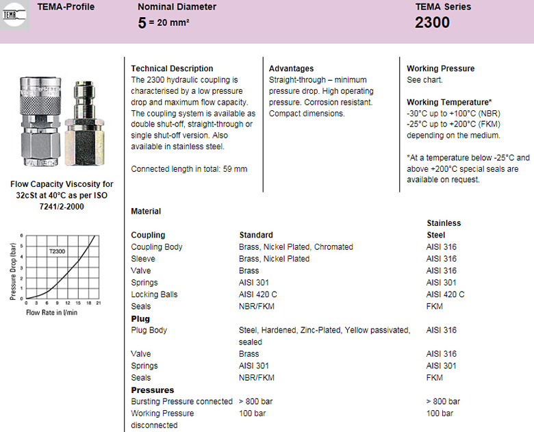 TEMA Series T2300 PARKER RECTUS TEMA Hydraulic Couplings T2300 Series