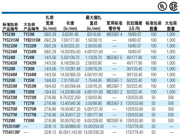 捆扎直徑(in/mm)范圍:0.63/16.00--13.00/330.20