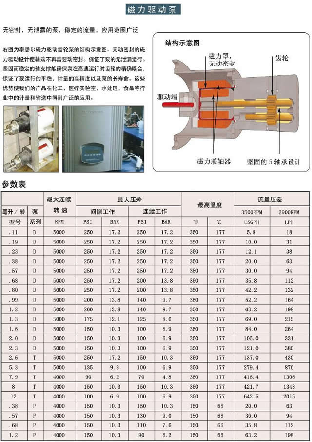 無密封,無泄露的泵,穩定的流量,應用范圍廣泛